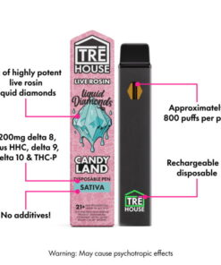 The Live Rosin Liquid Diamond Delta 8 Vape Pen – Candyland is a fantastic choice for those looking to enjoy a flavorful and potent vaping experience. With its unique candy flavor and powerful cannabinoid blend, it promises to elevate your mood and provide relaxation. Enjoy responsibly and savor the sweetness!
